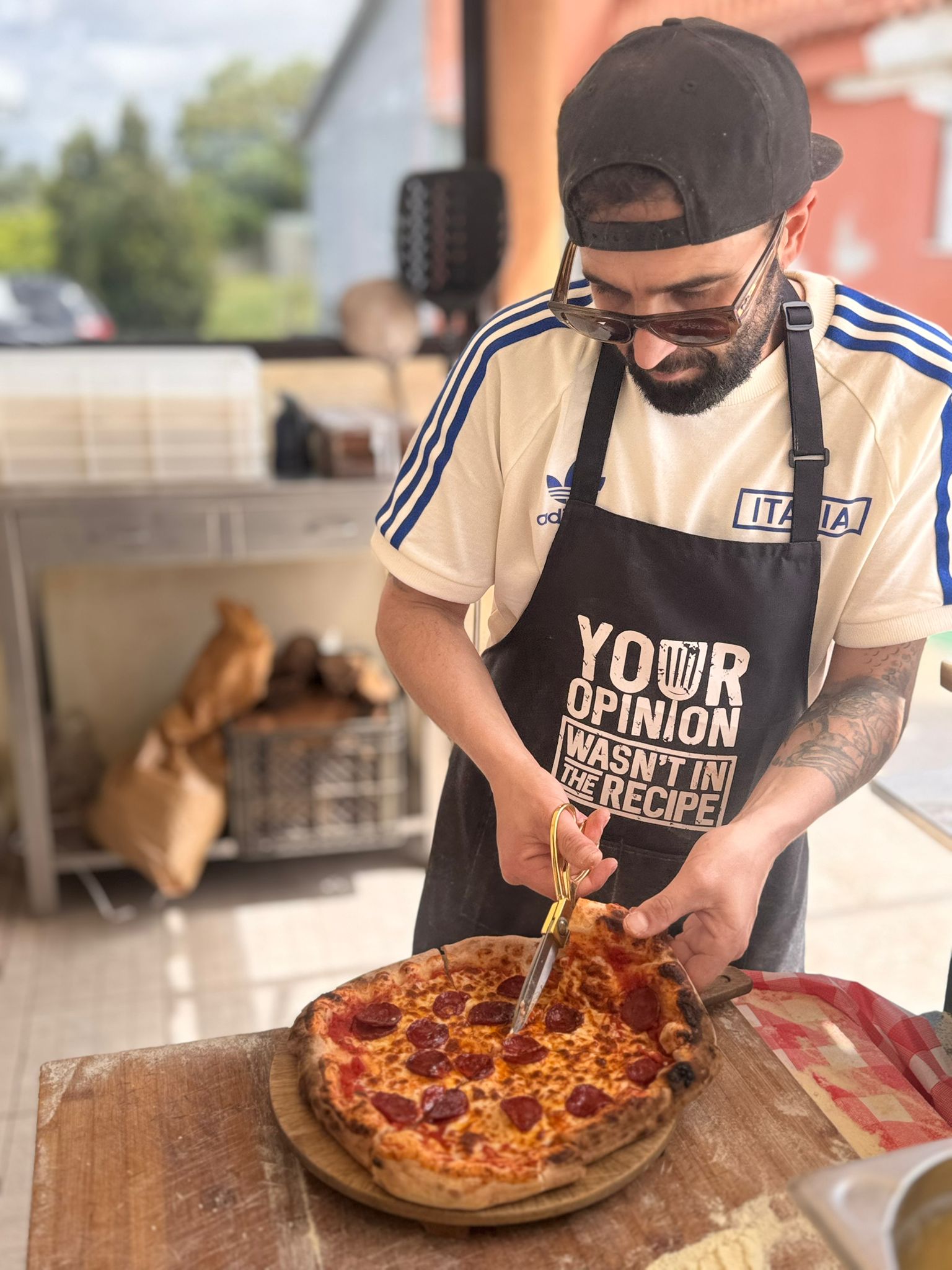 O Pizzaiolo Filipe Carvalho, conhecido nas redes sociais como “O senhor que faz as pizzas” tem 15 anos de experiência no ramo a transformar momentos em memórias deliciosas. Com o nosso serviço de pizza artesanal ao vivo, feito com os melhores ingredientes, pode contar com muito boa disposição à mistura.